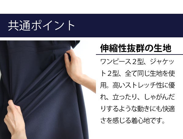 ワンピース2型・ジャケット2型のランナップは、組み合わせが自由自在。ワンピース1型は、マタニティ対応もしております。