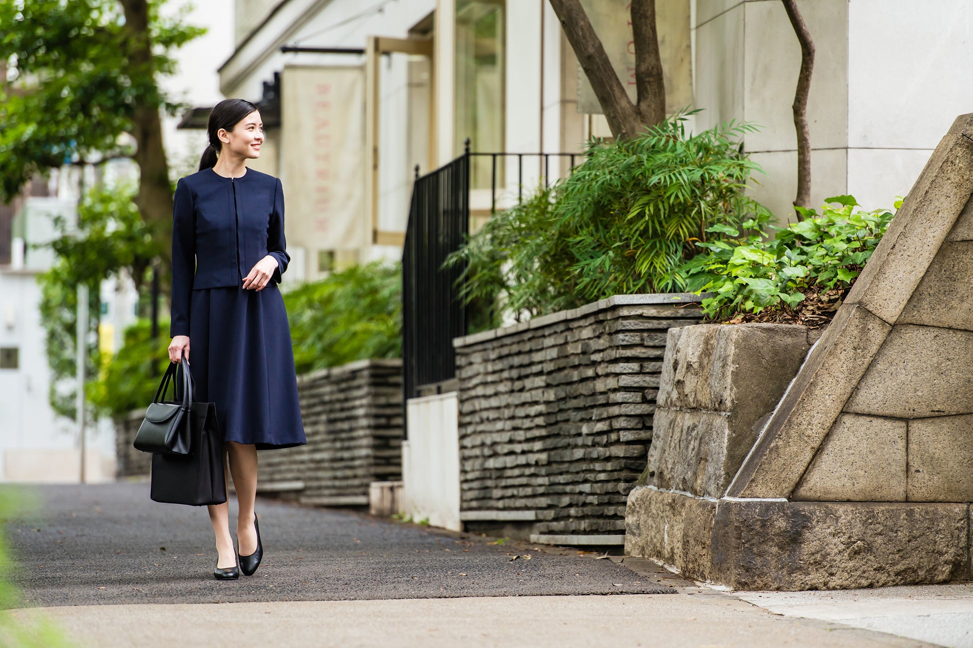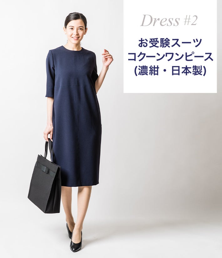 ストレッチ性と適度なハリ感、落ち感で、着心地と着映えを両立します。夏の説明会、冬のお受験本番、春の入学式・卒業式に秋の保護者会など、通年通してお召しいただける素材です。