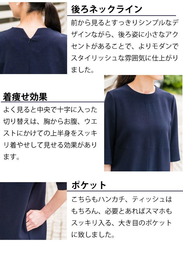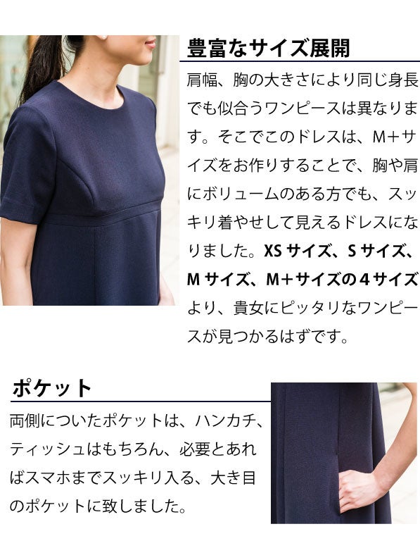 胸の下で切り替えのアクセントがあるこのAラインのワンピースは、これ1枚で保護者会や学校説明会にも着て行ける、正統派なデザインです。説明会は真夏に開催されることもあり、ジャケットを脱いだ時でも上品で優しい印象を与える、間違いのないワンピースは必須です。伝統校にも胸を張って着て行けるそんなワンピースに仕上がりました。
