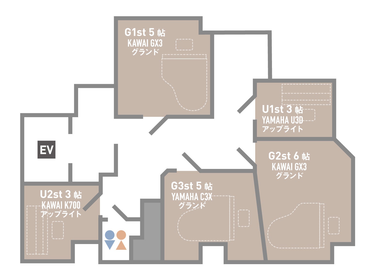 セルフ利用で、ピアノの練習を「手ごろな価格」「駅近で気軽」にお届け、WEBで予約・支払いを完結、当日の待ち時間がありません。店内24時間録画セキュリティーで安心利用。