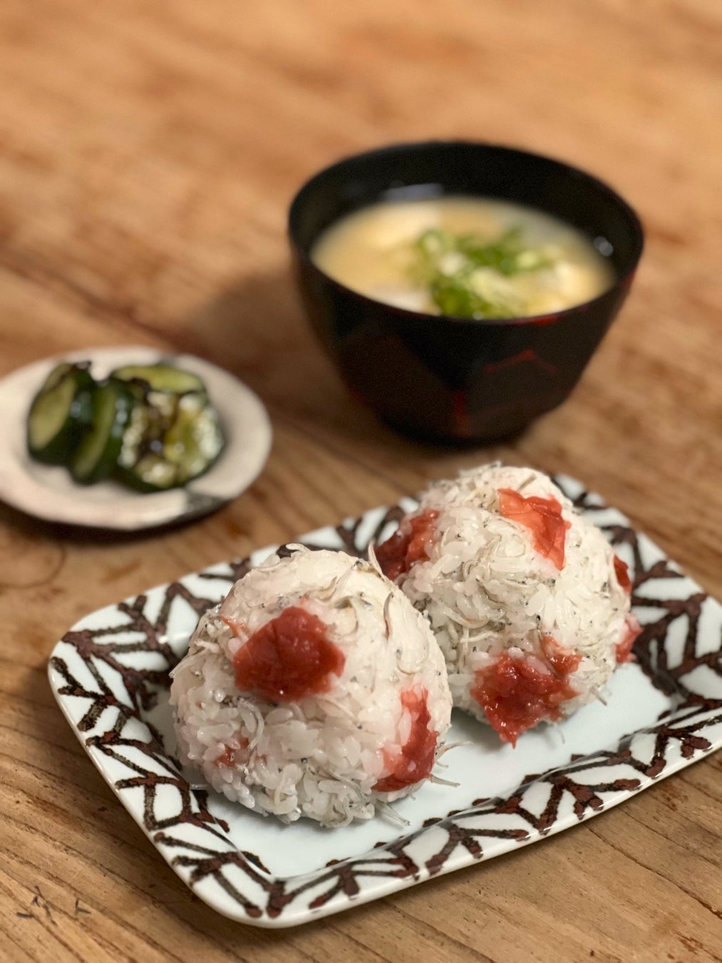 梅のクエン酸で胃を活性化し、しらすで消化の良いたんぱく質を補給。大根と豆腐の味噌汁でホッと一息。