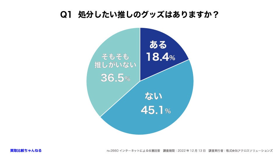 株式会社アクロスソリューションズと株式会社浜屋が共同運営している買取比較ちゃんねる(URL:https://www.hamaya-corp.co.jp/media )は、15歳〜60歳以上の男女2660人を対象に「推しのグッズ処分に関する意識調査」を実施しました。