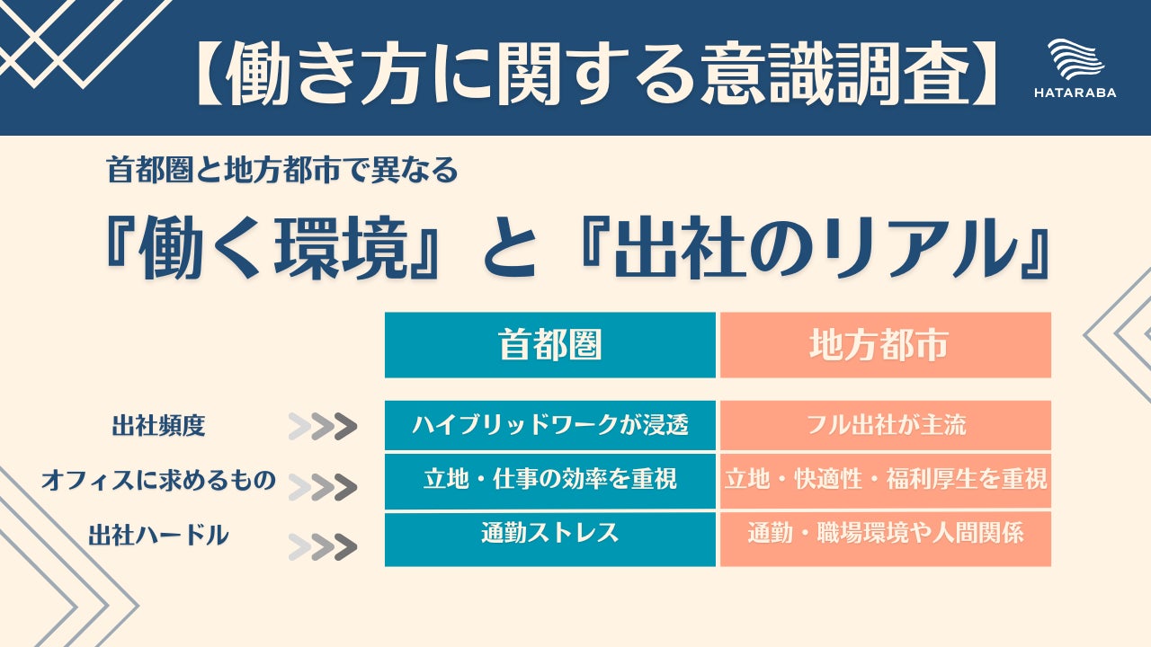 首都圏と地方都市で異なる『働く環境』と『出社のリアル』をデータで解明