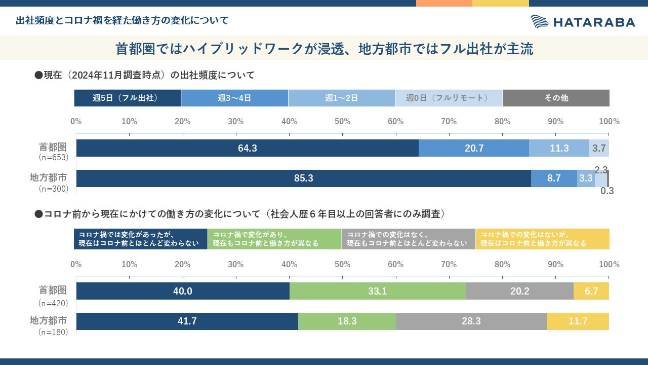 ・首都圏ではハイブリッドワークが浸透、地方都市ではフル出社が主流