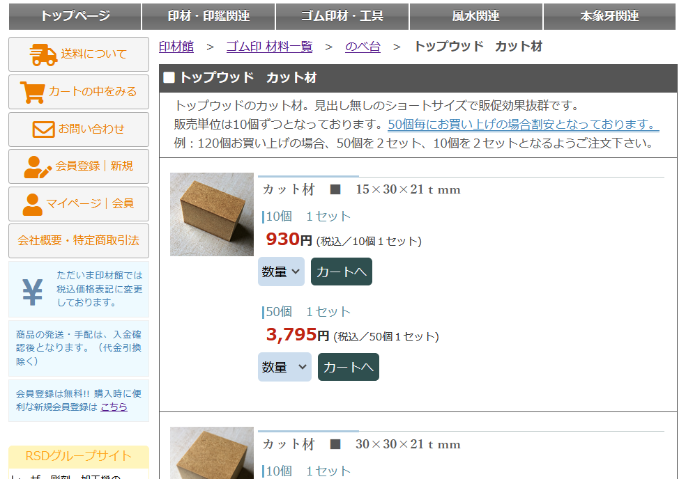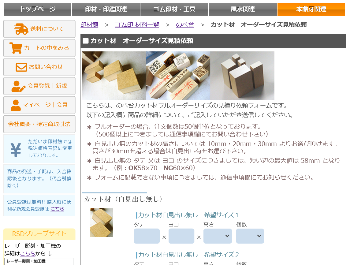 カット材の詳細につきましては、下記「RSD印材館」URLをご参照ください。