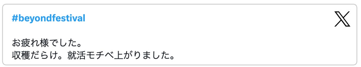 Beyond Cafeは「働くを、夢中に。」をミッションに掲げ、さまざまなサービスを展開しています。働くことに対してネガティブなイメージを抱く日本人が多い実情をもとに、BEYOND FESTIVALのブランドコンセプトを「就活ロックフェス」とすることで、ポジティブで熱い思いを持って働く社会人の声を学生に届けてきました。
