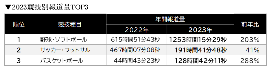 ▼2023競技別報道量TOP3
