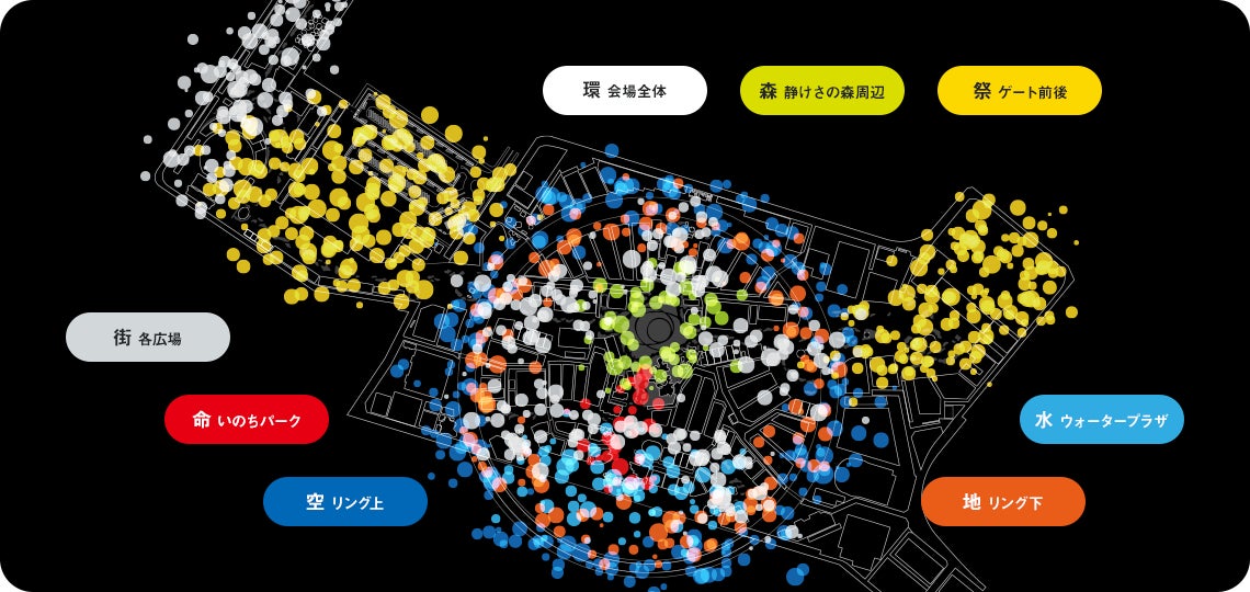 会場をいくつかのエリアに分け、それぞれに異なる音をデザイン。