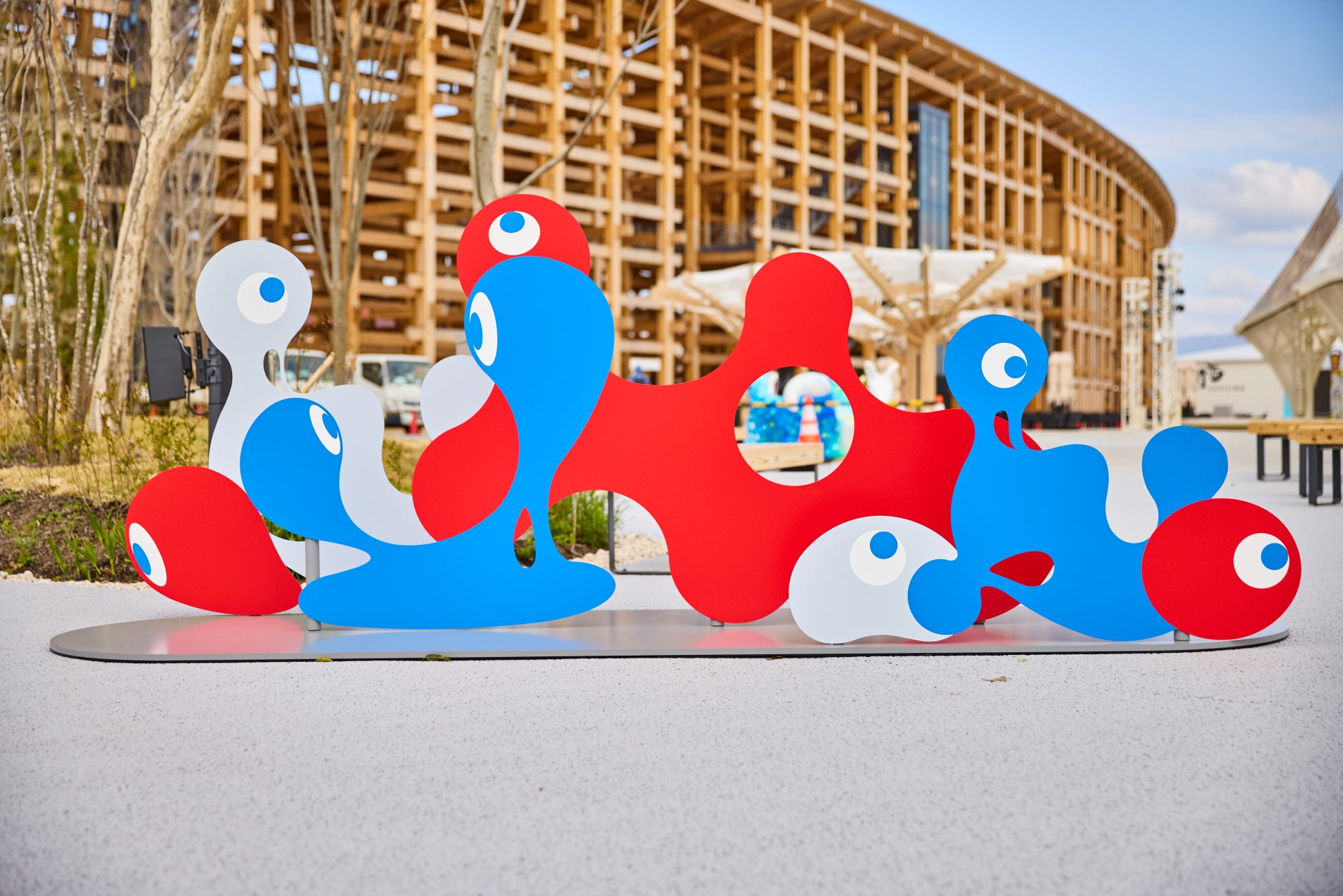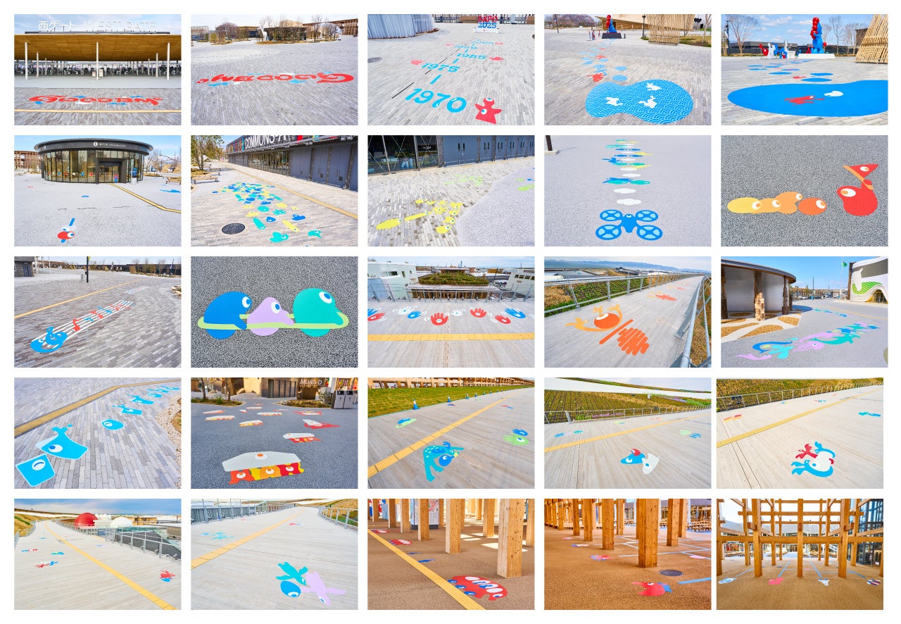 会場ドレッシングでは、会場を彩るデザイン装飾「EXPO2025 Dressing」、遊び心あふれる案内サイン「Co-MYAKU Sign」、25組のアーティストが参加するアートプロジェクト「Co-MYAKU‘25」の3つの装飾で会場全体を彩ります。