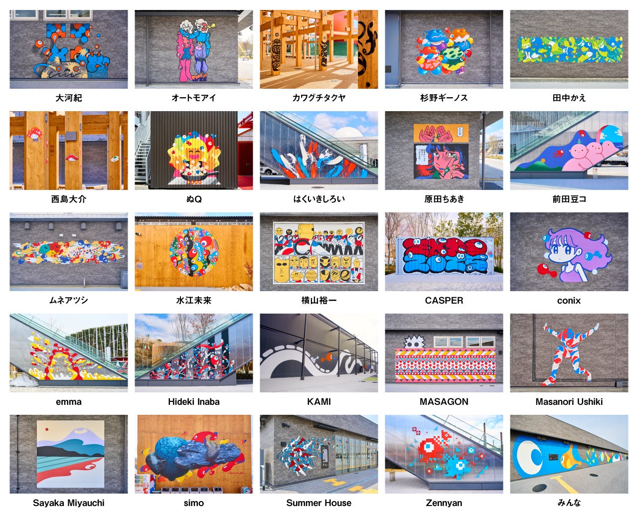 万博会場の壁や床に、アーティストがそれぞれの個性や技法を活かして描き出す「八百万(やおよろず)のいのち」。