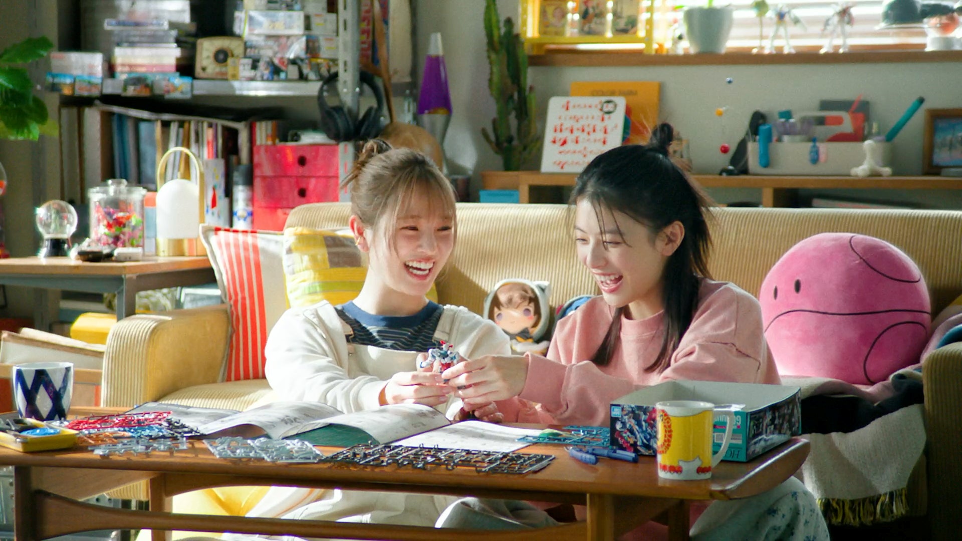 本CMはガンプラ初心者である出口さん(でぐ)が初めてのガンプラに挑戦して楽しさにハマり、友人の横田さん(まゆう)も一緒にガンプラを楽しむようになるストーリーです。プライベートでも仲の良い二人が、自然な表情でガンプラを作っている姿、そしてガンプラが完成したときの達成感に満ちた明るい表情に是非ご注目ください。