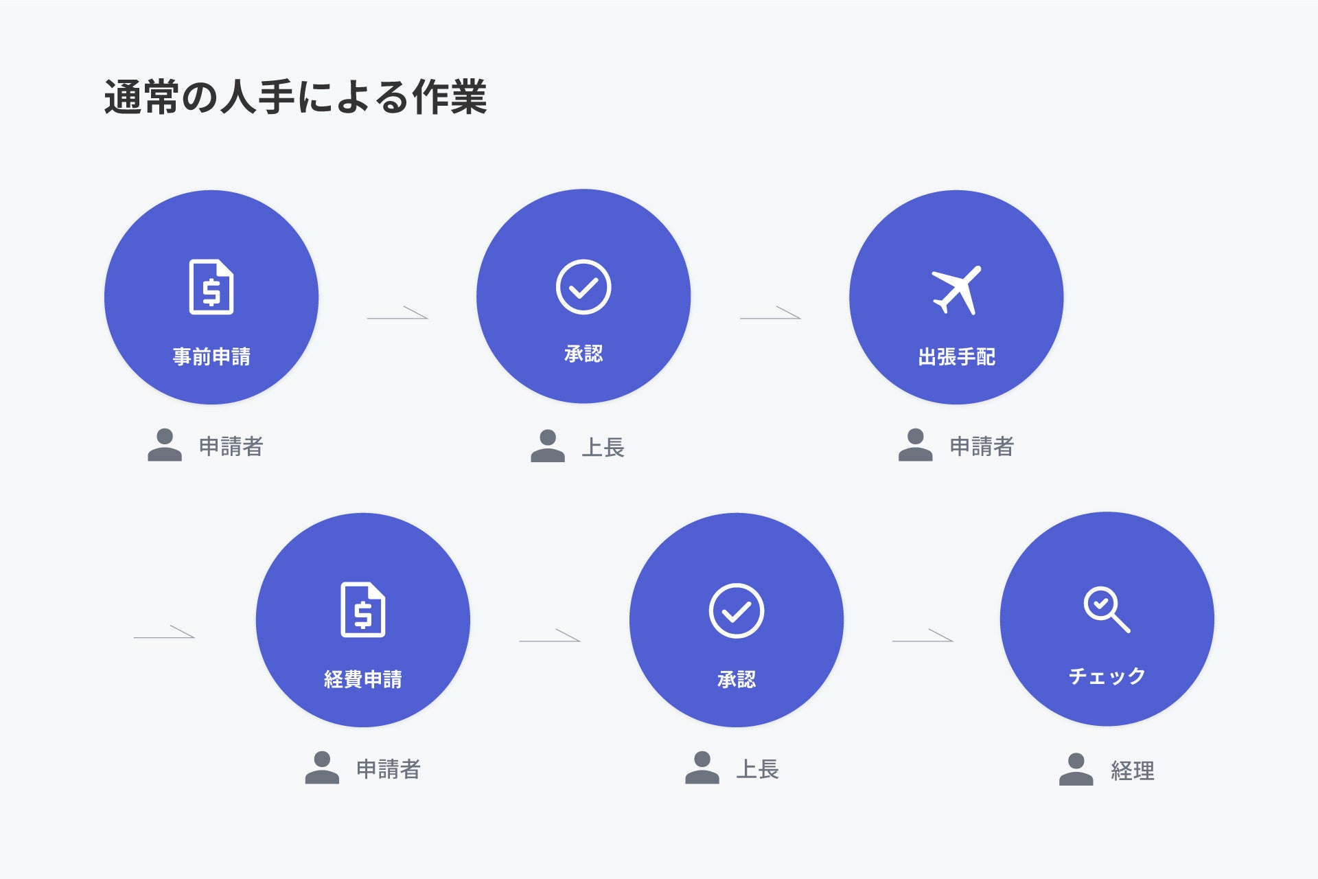 事前申請データ(AIが出張手配データを利用して自動で作成)と、出張後に提出された証憑(レシートやクレジットカードの決済情報)に差異がなかった場合、その経費申請の正当性・適正性・実在性は担保されていると判断できるため、上長承認・経理チェックを省略することが可能です。