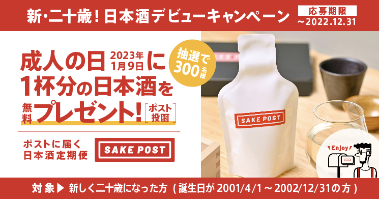 成人の日を日本酒デビュー日に。新20歳300名に日本酒を無料でプレゼント!ポストに届く日本酒定期便SAKEPOSTが新20歳を対象に日本酒デビューキャンペーンの応募受付を開始。