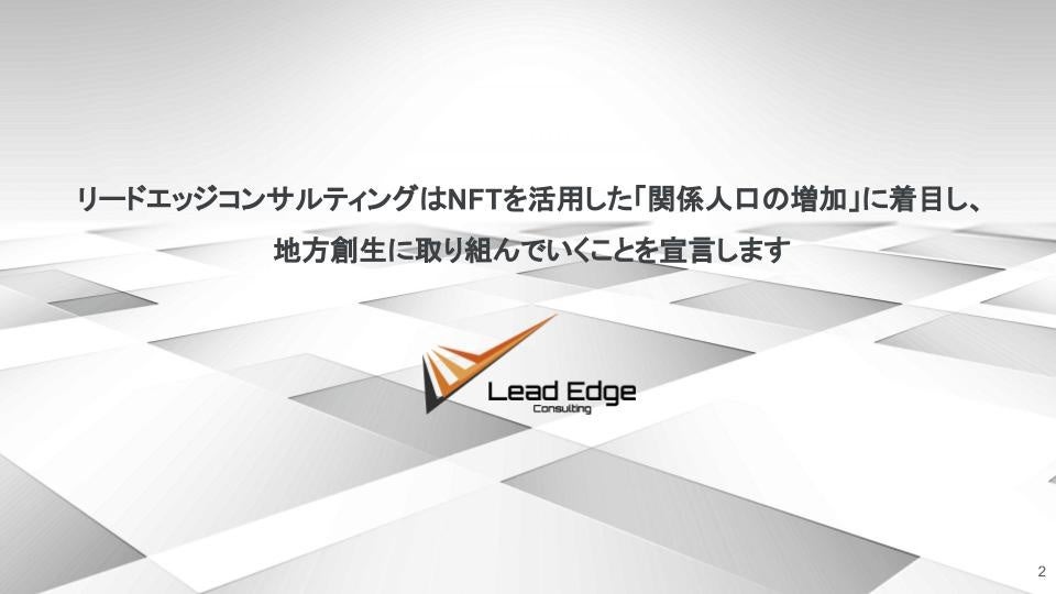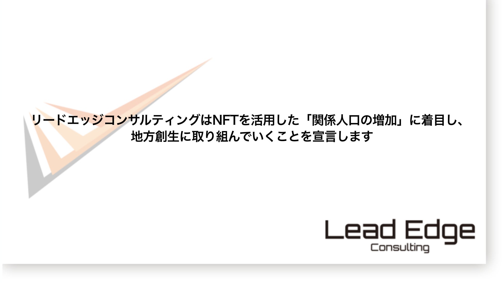 少子高齢化や都心部への人口流出により地方の過疎化がより一層深刻化する状況を受け、リードエッジコンサルティングはWeb3、NFTを活用した「関係人口の増加」に着目し、地方創生に取り組んでいくことを宣言いたします。