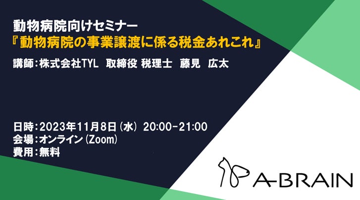 【TYL主催】動物病院向け「動物病院の事業譲渡に係る税金あれこれ」オンラインセミナー開催のお知らせ