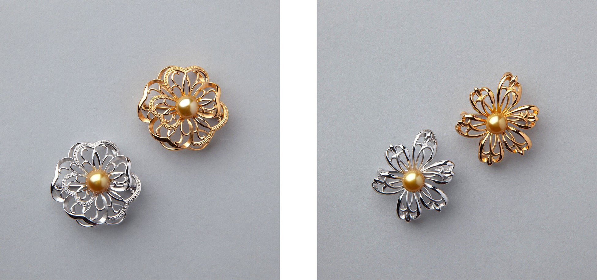 右:le Soleil 南洋真珠 ブローチ 花 9mmUP SV925 各1色 34,100円