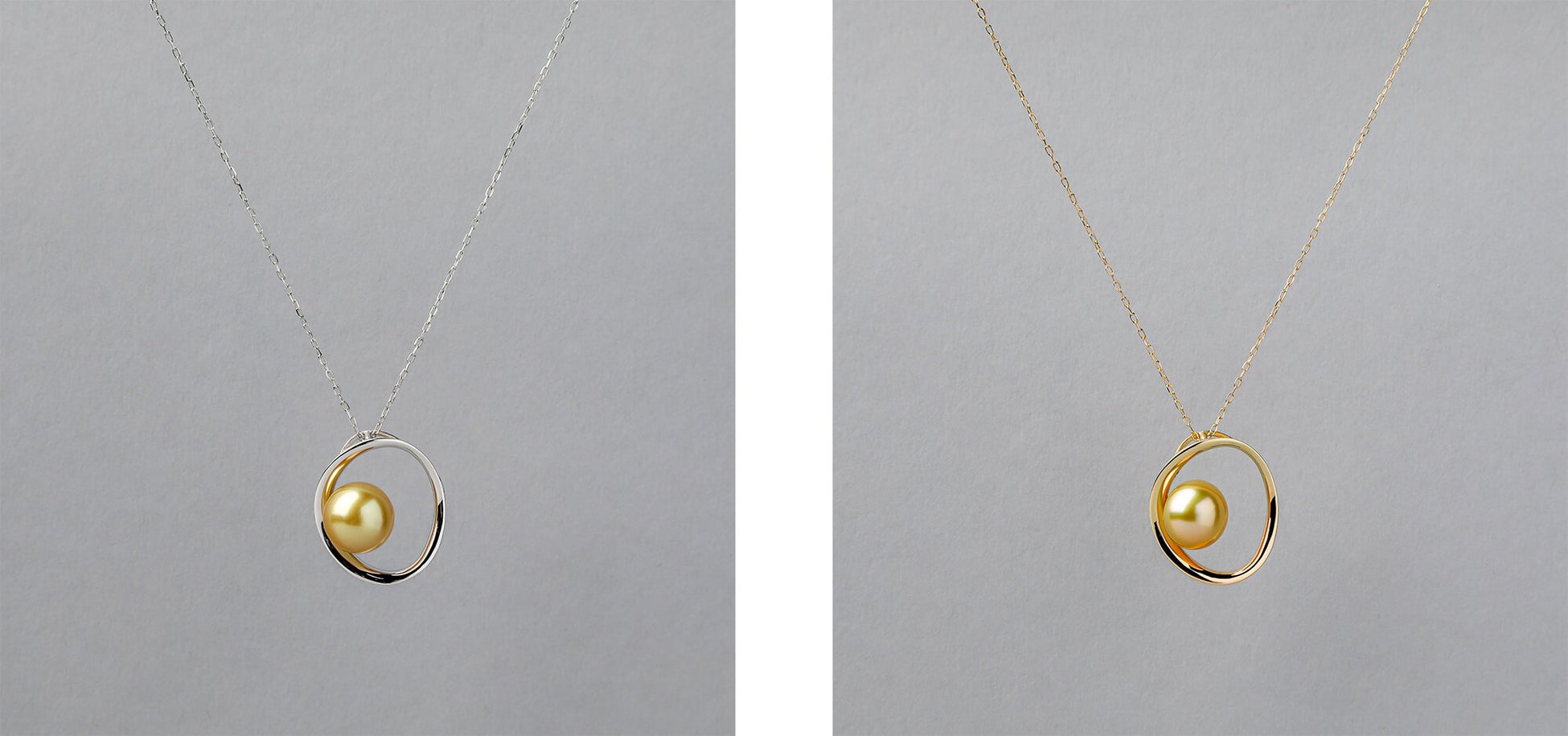 右:le Soleil 南洋白蝶真珠 ペンダント 8mmUP K18YG 77,000円