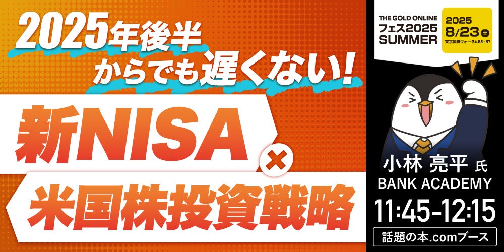 株式会社幻冬舎ゴールドオンライン(本社:東京都渋谷区千駄ヶ谷二丁目30番1号 ベネッセビル2階、代表取締役:山下征孝)は、2025年8月23日(土)に東京国際フォーラムで開催される「THE GOLD ONLINE フェス 2025 SUMMER」にて、投資家ぽんちよ氏、 BANK ACADEMY小林亮平氏が特別講演にご登壇することをご報告いたします。