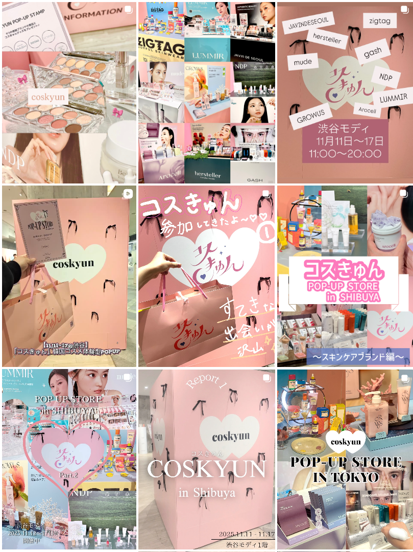 韓国のコスメ・ビューティーブランドを日本で輸入・販売・マーケティング推進している PAGE-ONER株式会社は、10月8日(水)〜10月14日(火)/大阪・なんばマルイ・11月11日(火)〜11月17日(月)/東京・渋谷MODIでポップアップイベント「コスきゅん」を開催いたしました。両会場合わせて約4,000名以上が来場し、盛況のうちに終了しましたことをご報告いたします。ご来場いただいた皆さま、出展ブランドさま、関係者の皆さまに心より御礼申し上げます。