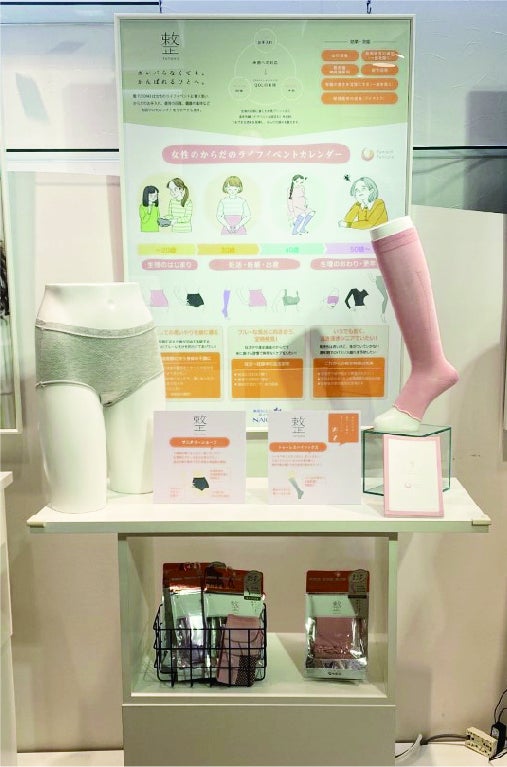 今回出展するのは、シーンやお悩みのからだの部位に合わせて、締め付けずゆったり履けるむくみ改善ソックス「トゥーレスハイソックス」、血行を整え、筋肉疲労や疲れを改善「タンクトップ/長袖インナー」、「ショーツ」、「ナイトブラ」、「レギンス」、締め付けずゆったり包むカノコ編み伸び伸び「腹巻」など豊富なバリエーションをご用意しております。