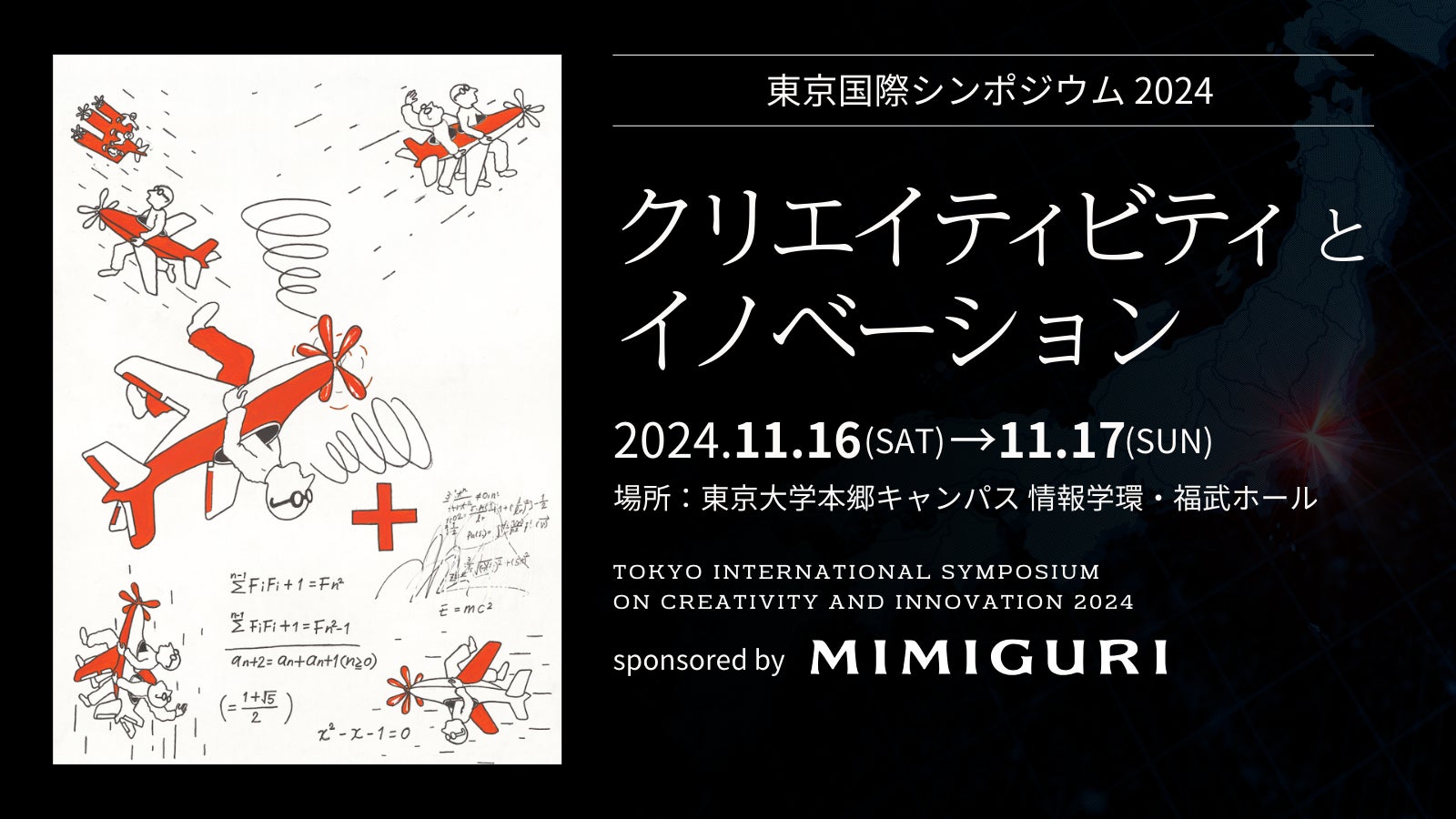 「創造性の土壌を耕す(Cultivate the Creativity)」を理念に掲げる経営コンサルティングファーム、株式会社MIMIGURI(本社:東京都文京区、Co-CEO:ミナベトモミ、安斎勇樹、以下「MIMIGURI」)は、2024年11月16日(土)~17日(日)に東京大学本郷キャンパスで開催される「東京国際シンポジウム2024『クリエイティビティとイノベーション』」を後援いたします。本シンポジウムは、創造性とイノベーションの分野で活躍する世界の研究者たちが集い、最新の知見を共有する日本初の国際シンポジウムです。文部科学省認定研究機関*であるMIMIGURIは、シンポジウムの開催を支援し、創造性を活かした社会変革を後押しします。
