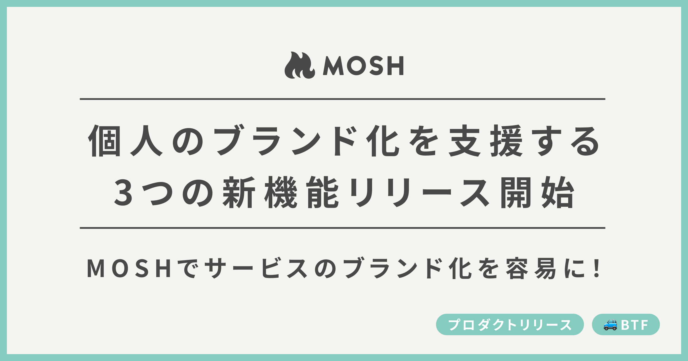 そこでMOSHは、個人の活躍をより一層サポートするべく、個人のブランド化支援のための新たな機能を開発いたしました。