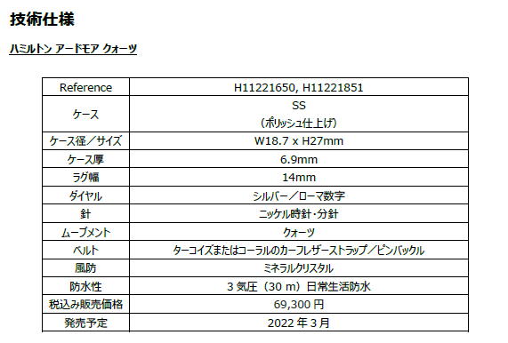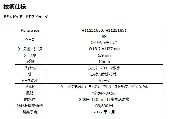 詳細はhamiltonwatch.comをご覧ください。Facebook、Twitter、Instagramのアカウント@hamiltonwatchをフォローしてください。