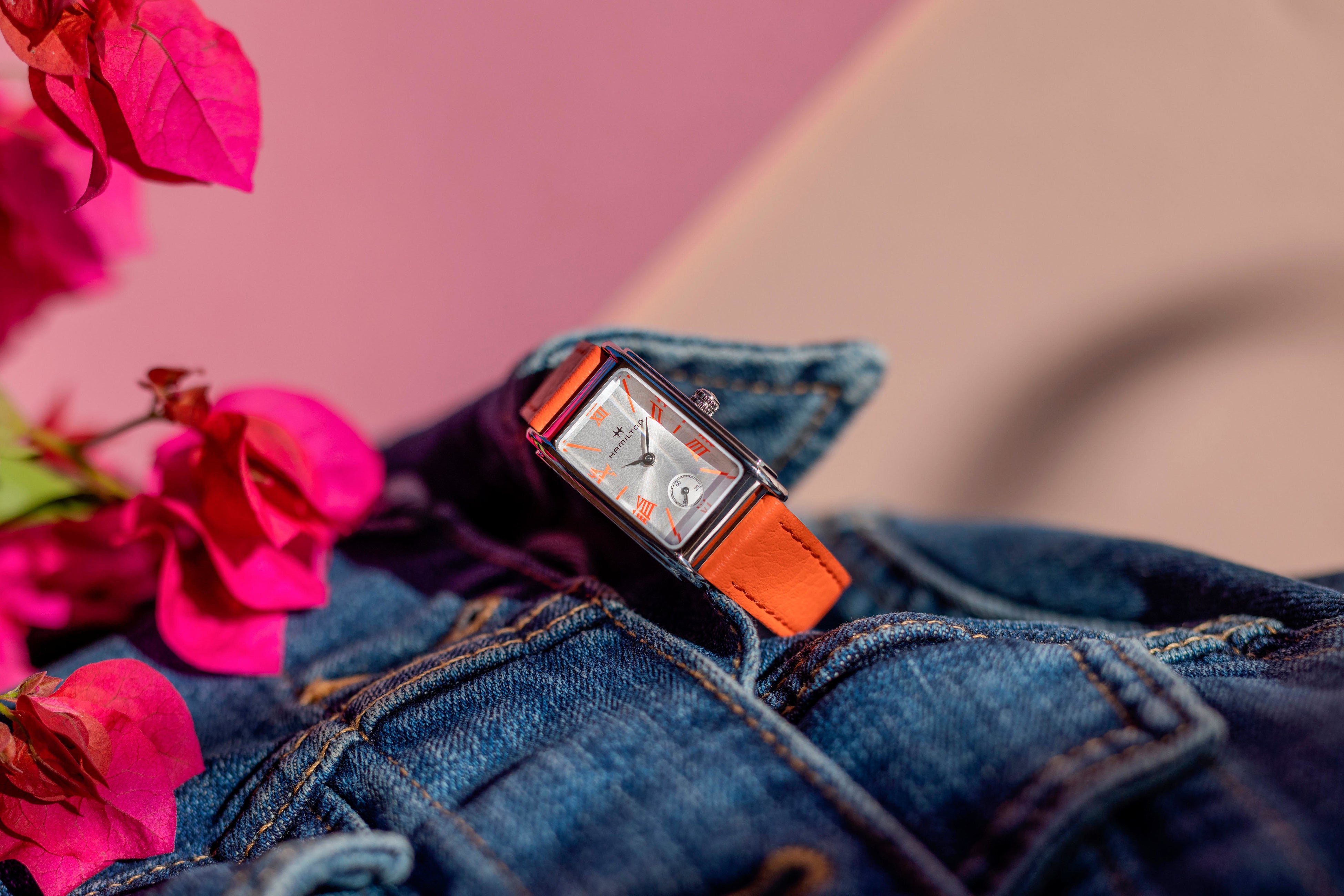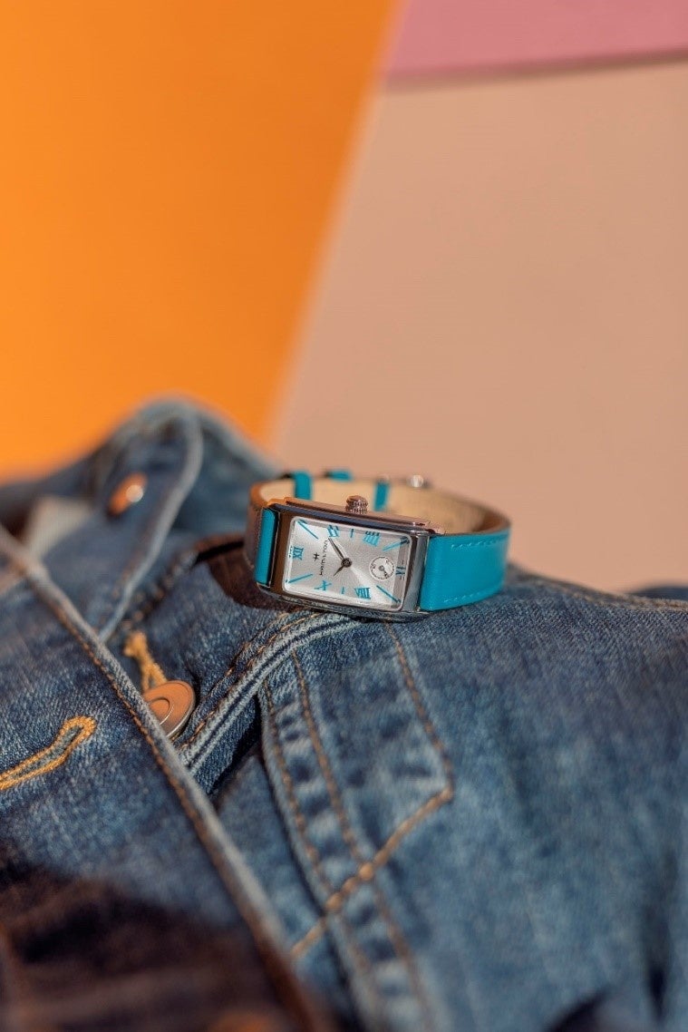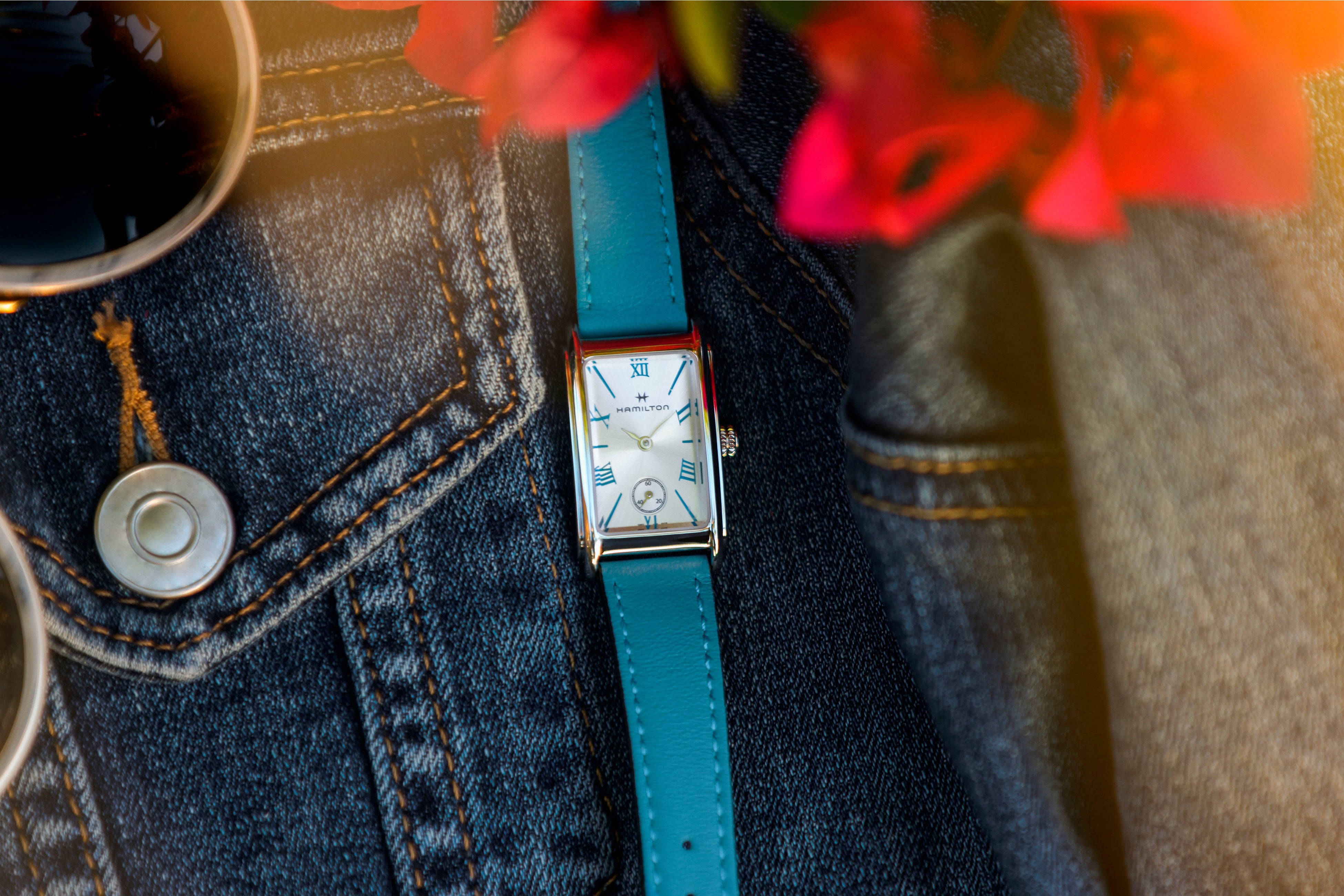 思わず振り返るアメリカン クラシック。クールなターコイズまたは明るいコーラルを選べる、新作モデル@hamiltonwatch「アードモア クォーツ」は、注目のスタイルです。