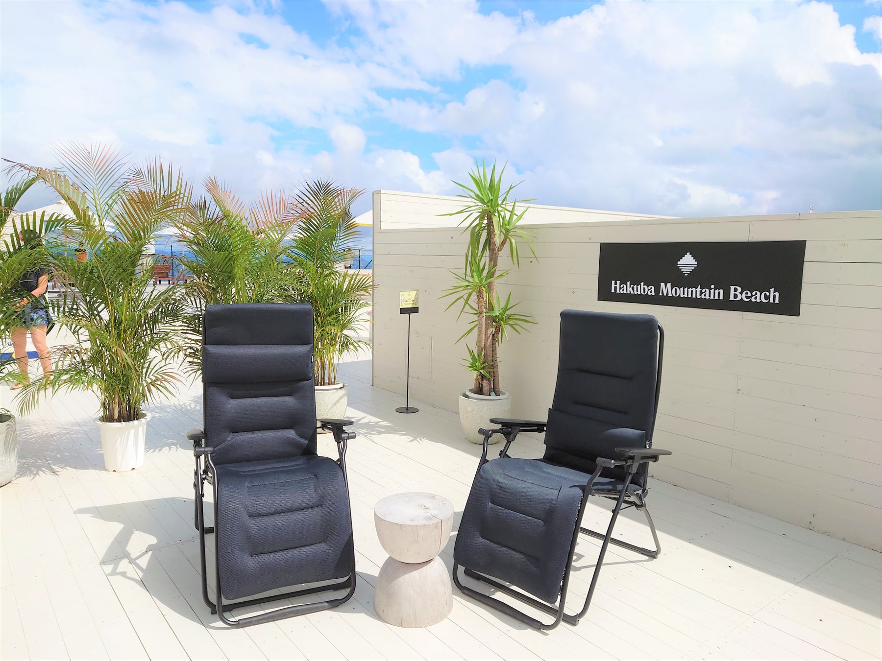 白馬八方尾根スキー場のゴンドラ上部、兎平テラスの屋上には標高1,400mの絶景を堪能できる「Hakuba Mountain Beach」をご用意しています。100km先の八ヶ岳や浅間山などを見渡すことができ、心地よい風や自然の音を五感で感じながらまるでビーチリゾートにいるかのような上質なひと時を家族やカップル、友人とお過ごしいただけるおすすめスポットです。これまでグリーンシーズンのみ営業していたマウンテンビーチをGWの10日間限定で一足先に開放いたします。