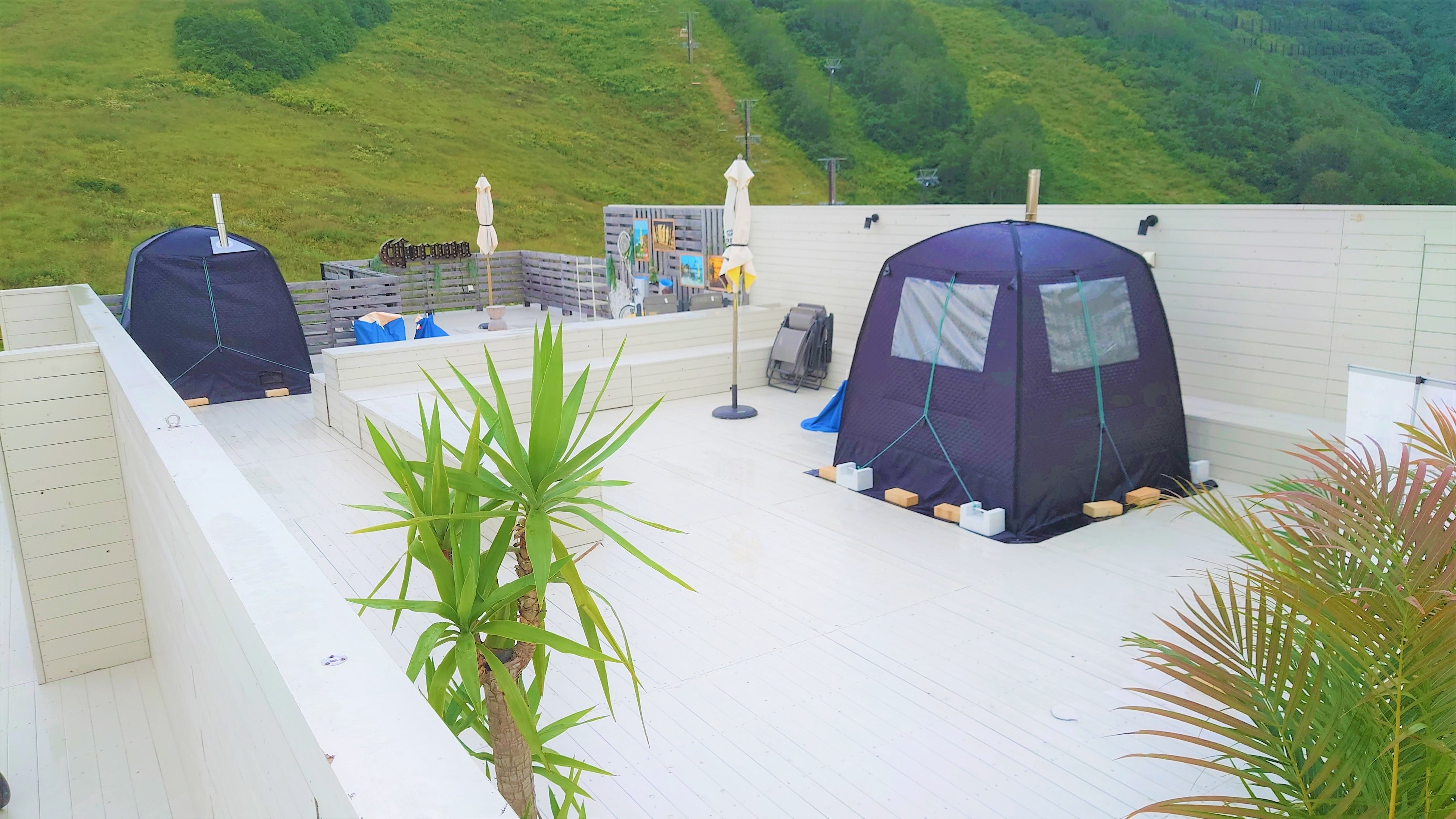 アウトドアサウナテントを4基設置し、全て薪ストーブでの加温、セルフロウリューを楽しめるようにすることでお客様により自分好みの環境をセッティングいただくことが可能になりました。