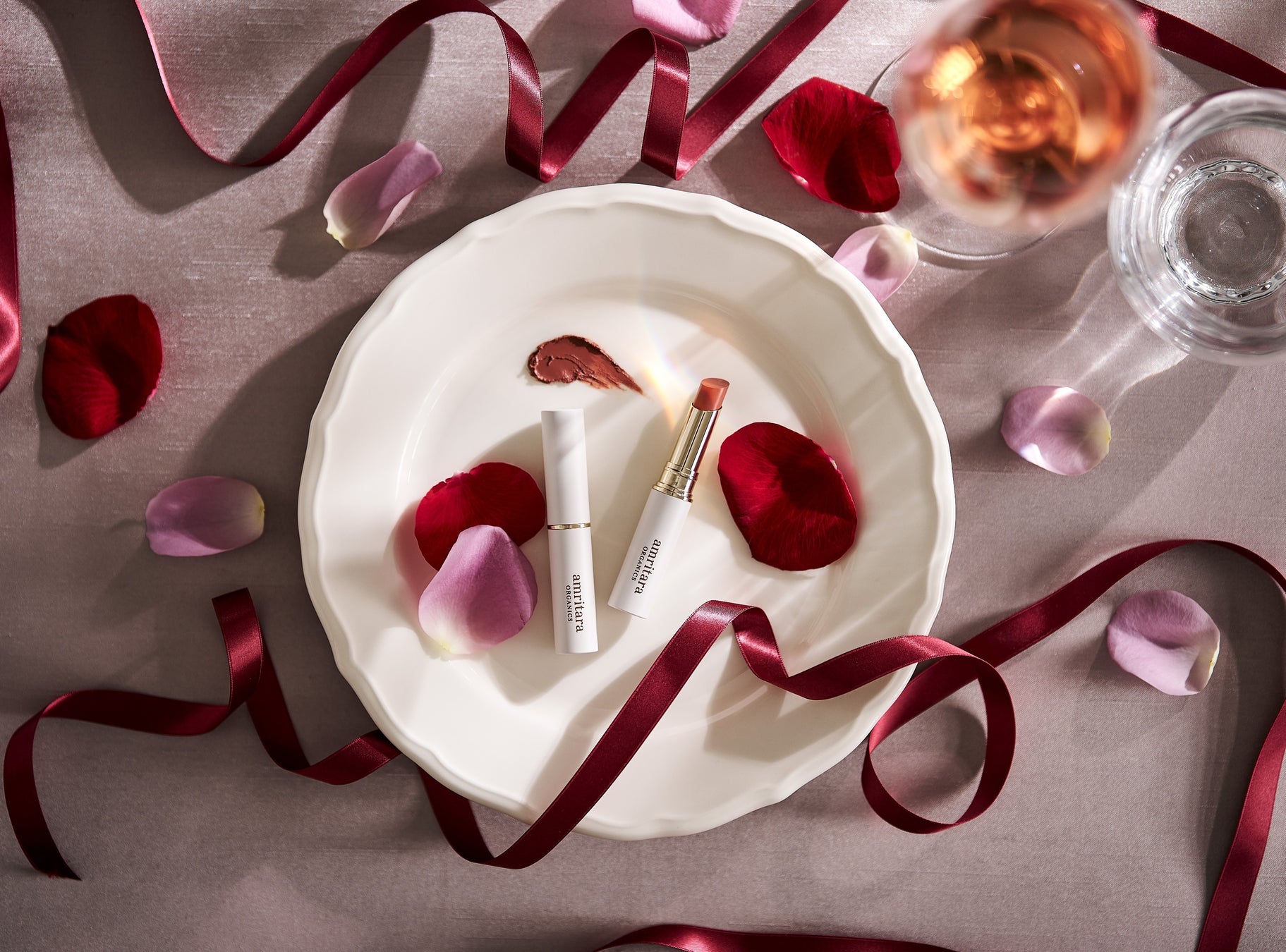 アムリターラでは、少しづつ、食べ物や飲み物と一緒に口の中に入ってしまう口紅こそ、安心して使える口紅を使ってほしい、そんな思いで開発されたのが<ローズアミュレットルージュ>です。