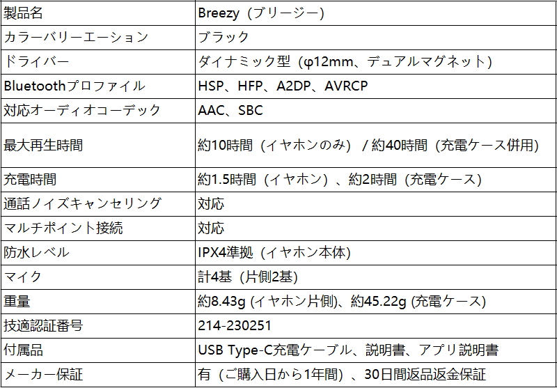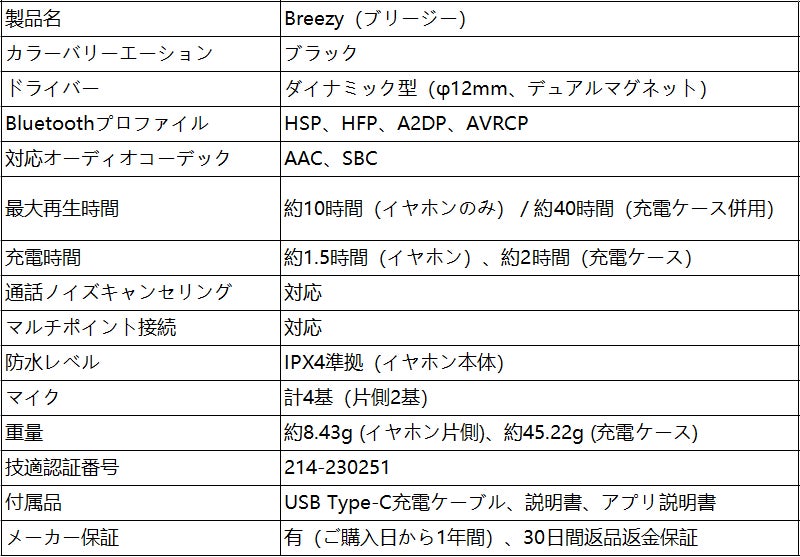 公式ページ:https://jp.soundpeats.com/products/breezy