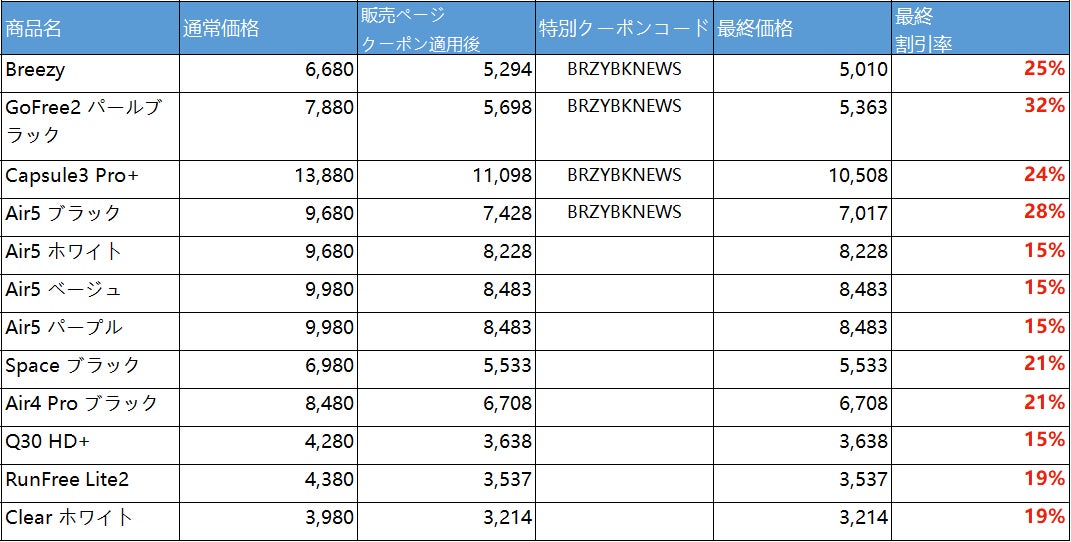 発売を記念し、10月14日(月)からBreezyの特別セールを実施します。さらに10月17日(木)からは、Amazonで開催される「プライム感謝祭先行セール」にて弊社製品の特別セールを実施します。最大32%オフという大変お求めやすい価格で提供いたしますので、この機会にぜひご利用ください。