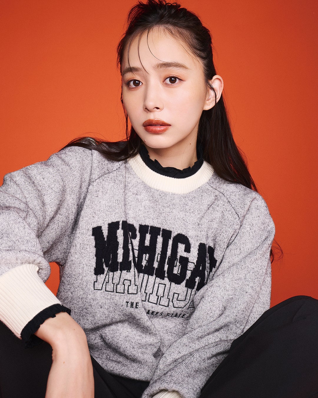 カレッジ風のロゴプリントに、ゆったり丈のサイズ感が思わず可愛い..と漏れてしまうような王道アイテム。腕まくりするとぽわん袖がより引き立ちます♪この冬はビッグシルエットのスウェットに、スカートを合わせたコーデがイチオシです!