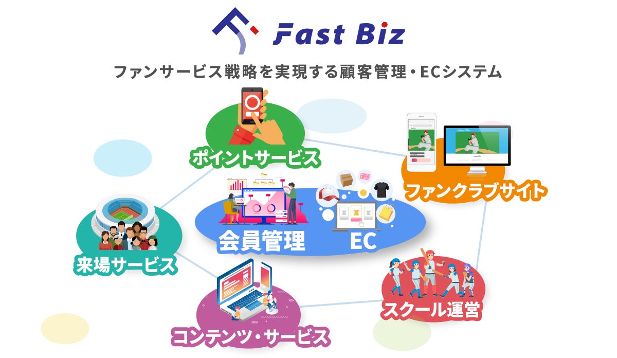 「Fast Biz」はスポーツチームの運営支援サービスとしてつくられ、プロ野球球団の読売巨人軍、日本ハンドボールリーグ・ジークスター東京、ジャパンラグビートップリーグ・NTTドコモレッドハリケーンズ大阪に採用*1され、チーム事業の拡大やファンとのコミュニケーション強化を目指すチーム経営を支援しています。会員を効率的に運営管理できることに加え、集積される膨大なデータを活用してマーケティング、プロモーションまで一気通貫で実施できます。