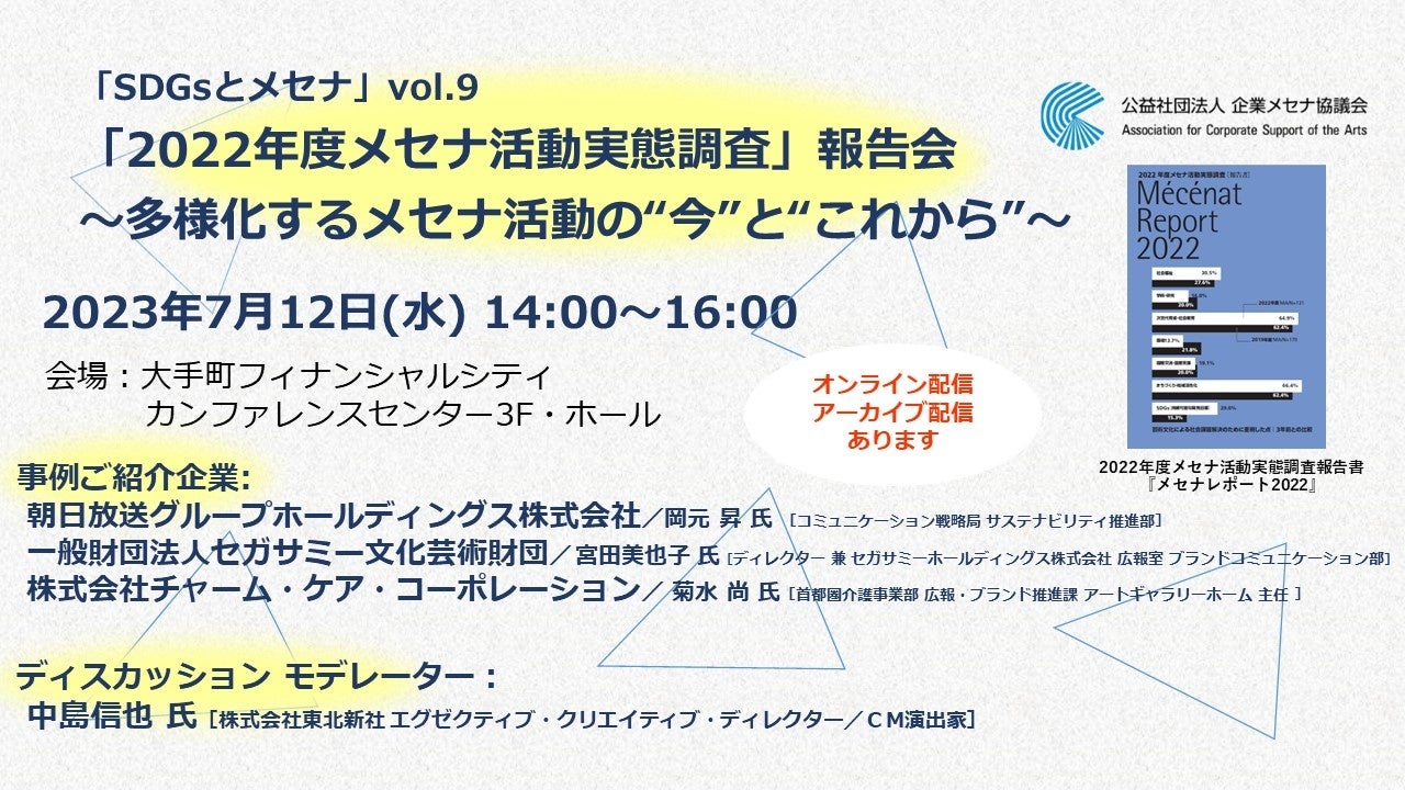 「SDGsとメセナ」vol.9「2022年度メセナ活動実態調査」報告会 開催