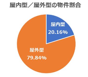 エリアリンクは、トランクルーム「ハローストレージ」を運営し、屋外型、屋内型(ビルイン型、一棟型)のトランクルームやバイク専用のトランクルーム等さまざまな形でサービスを提供しています。5月31日に本年50店舗目のトランクルームをオープンし、6月には本年5店舗目の屋内型トランクルームがオープンとなります。エリアリンクでは、日本全国に約2,083物件のトランクルームを運営しており、屋内型の割合は全体の20.16%(343物件)となっています。近年、屋内型の需要も多いことから、今後も積極的に展開していく予定です。