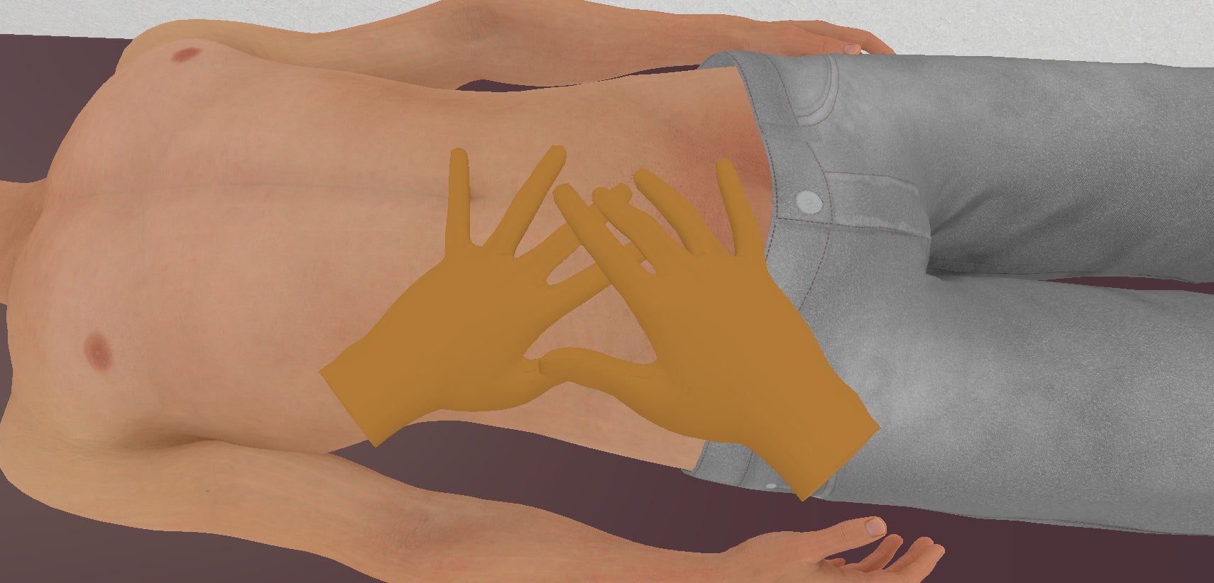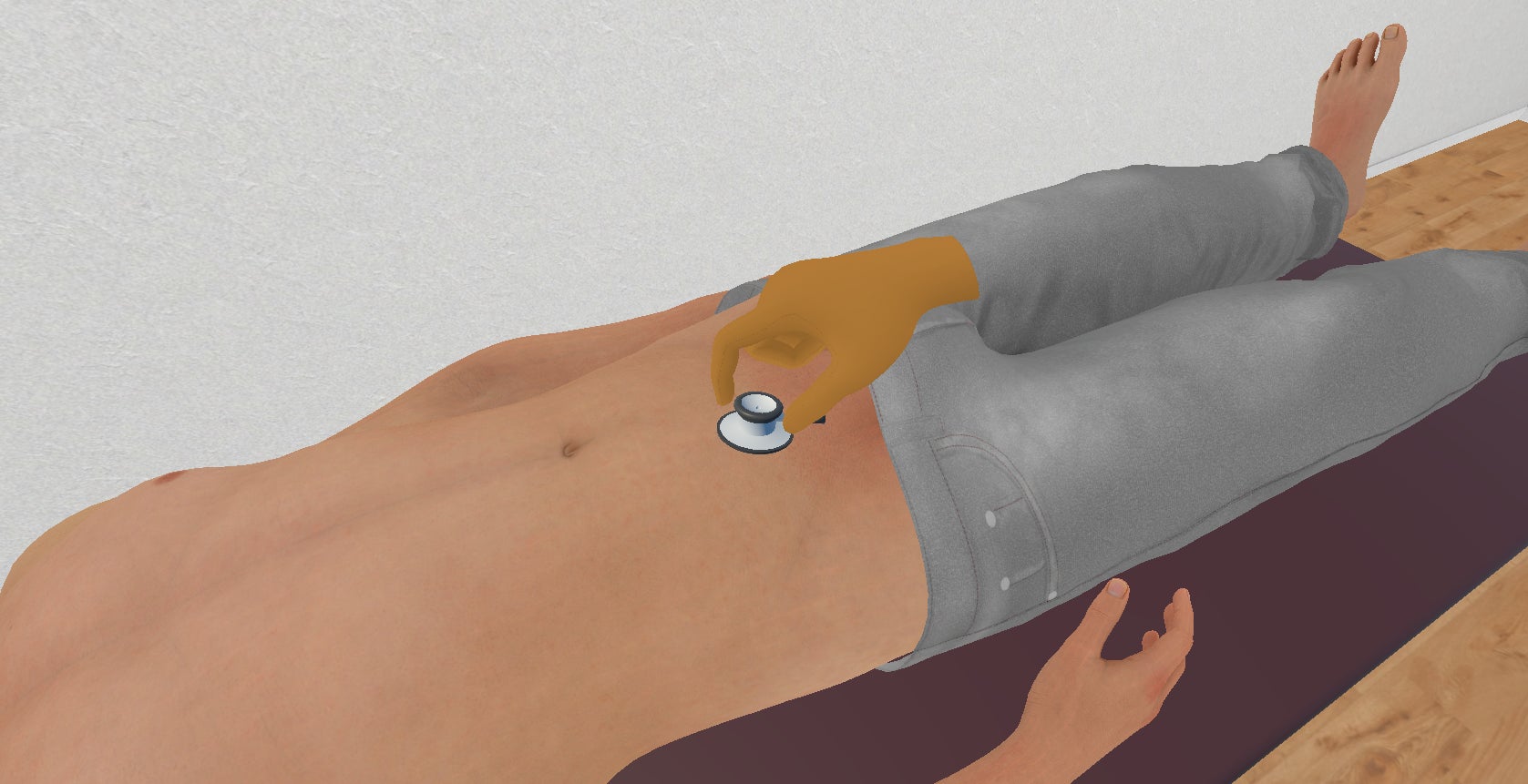 コントローラーを使用せず自分の手を認識させて学習を進めるため、実際の診療に近い体験が得られます。患者のズボンを下げる動作や聴診器から聴こえる音なども、実際の診療を忠実に再現しているポイントです。