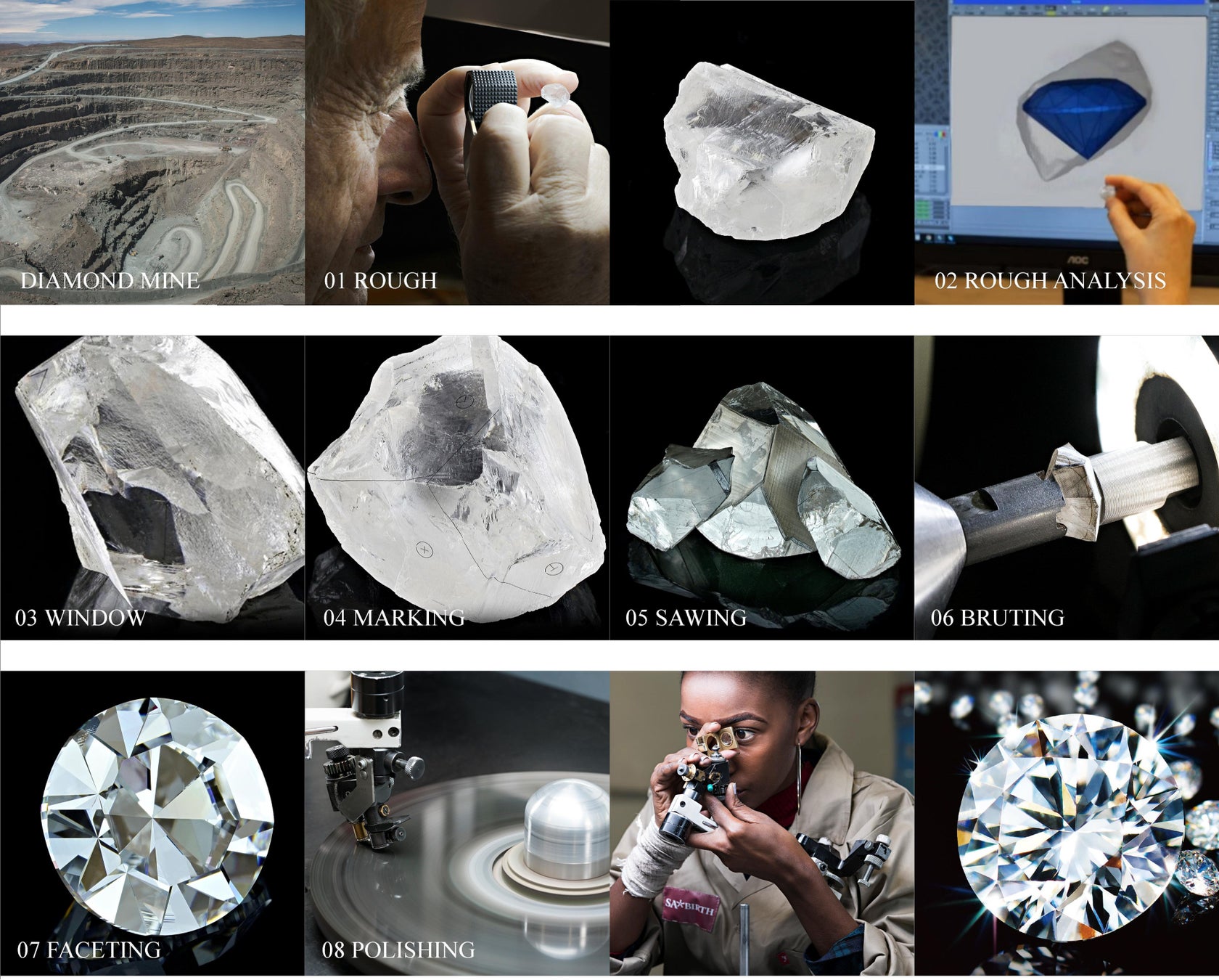 0.17ct以上のダイヤモンドのガードル(ダイヤモンドの外周の一番長い部分)に最大10桁の番号を刻印し、研磨工場や研磨責任者などの履歴を厳密に管理。ボツワナや南アフリカなどのサザンアフリカ地域では原石の採掘だけに限られていましたが、サバースは現地での研磨を実施することにより雇用の拡大、生活水準向上に貢献しています。