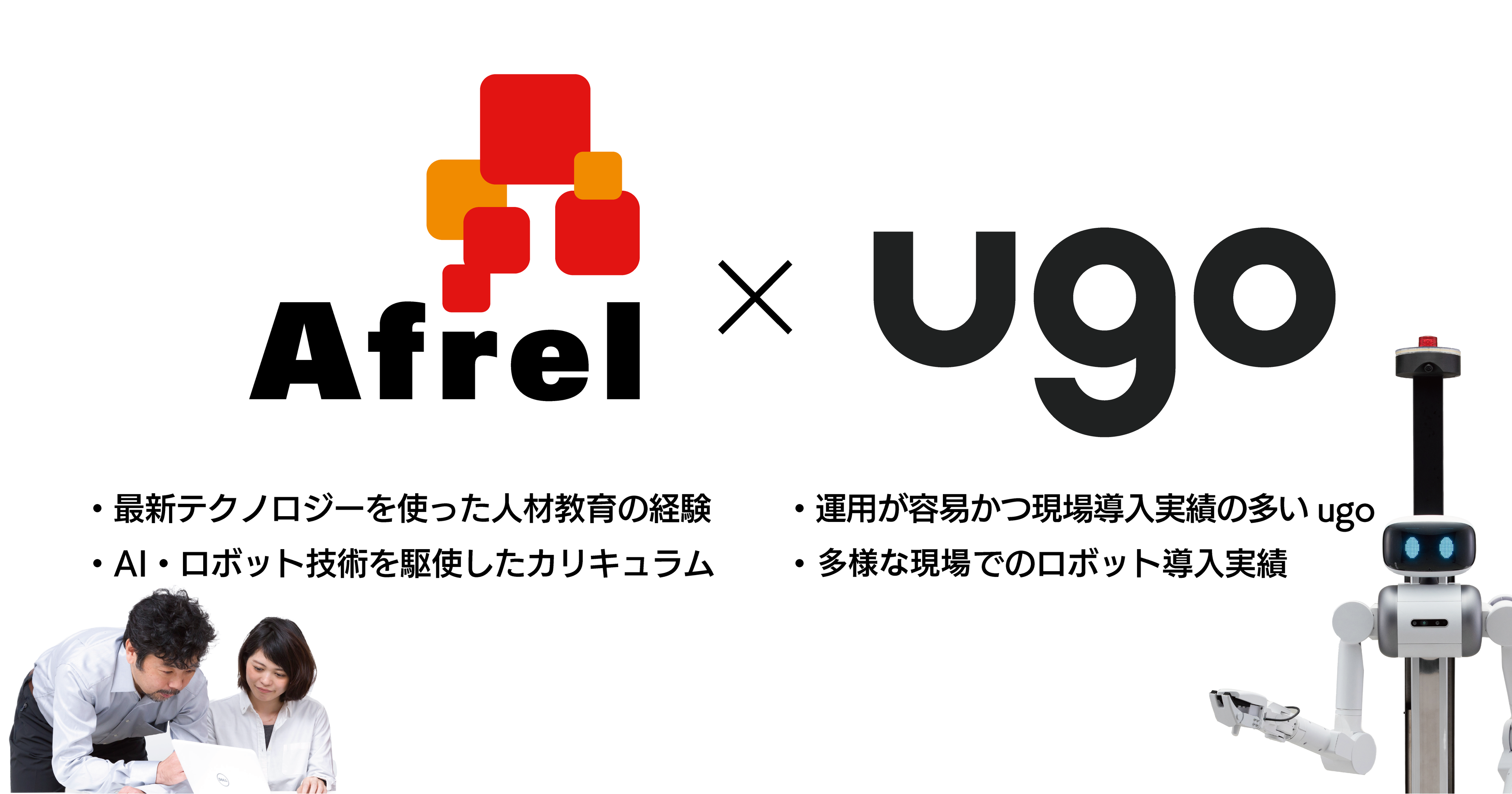 業務DXロボットの開発を手掛けるugo株式会社(ユーゴー、東京都千代田区、代表取締役CEO 松井健)と人材育成/研修サービス、小型ロボットアームとAIを組み合わせ製造業の生産効率向上を図るサービスなどを展開している株式会社アフレル(福井県福井市、代表取締役社長 小林靖英)は、生産設備の自動化アセスメントの実現性を高める点検DXロボット「ugo」(ユーゴー)を用い、従来の100%ヒトが点検する場合と、点検DXロボット及びAIを活用した自動点検の場合とを比較検証できる実践研修を2023年1月より提供いたします。