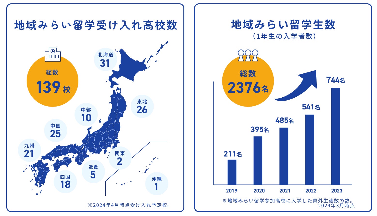 留学先の学校、地域みらい留学生ともに年々増加しています。
