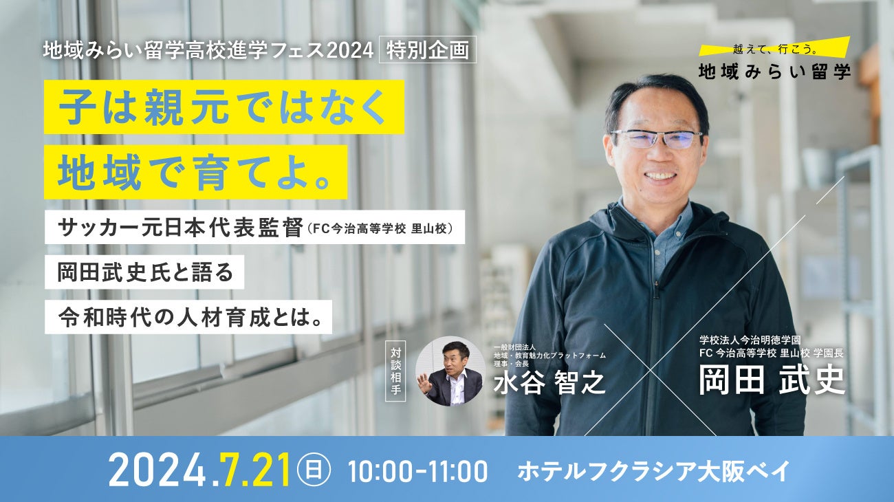 【特別対談】サッカー元日本代表監督・岡田武史と語る「子は親元ではなく地域で育てよ」 岡田武史 × 水谷智之 ~2024年7月21日「地域みらい留学高校進学フェス」(大阪・ベイエリア)にて、入場無料~