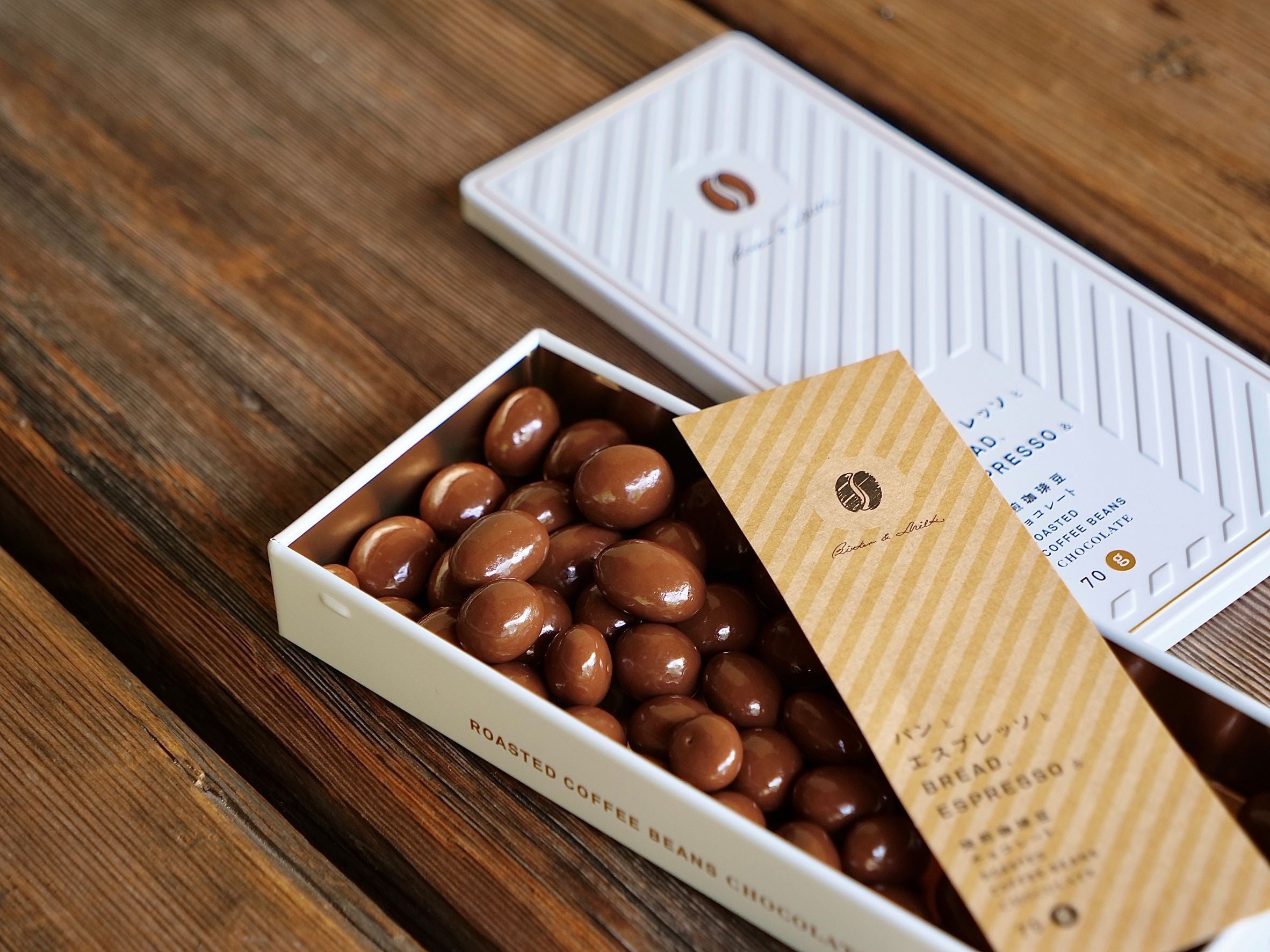 「パンとエスプレッソと」オリジナルのブレンド豆を、一粒一粒チョコレートでコーティングしました。
