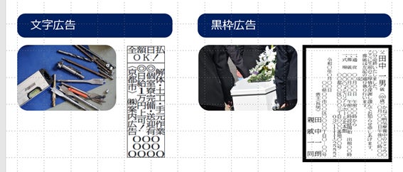 KALO(カロ)は、黒枠広告、文字広告をWebブラウザ上で作成できるサービスです。いつでも、どこでも広告作成作業が可能なため、作業効率化・運行要員削減を検討中の方にお勧めです。申込登録、小組作成、集販作成、承認・校了まで対応しております。