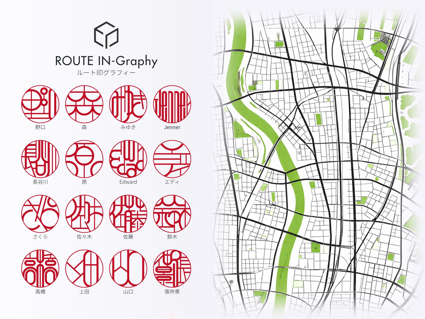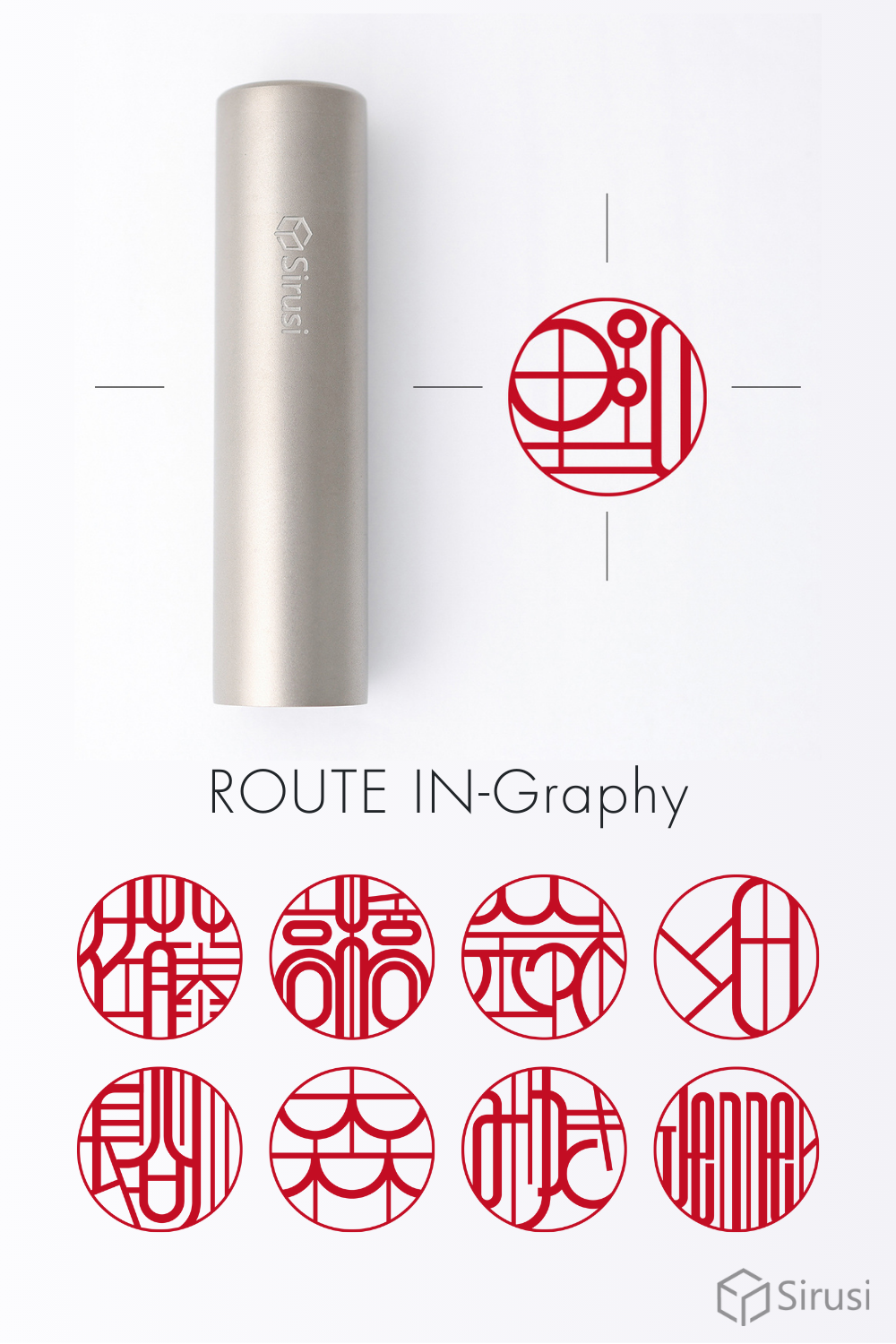 日本庭園の円窓から着想を得た「エンソー印グラフィー」と、都市をつなぐマップ構造から生まれた「ルート印グラフィー」は、印鑑を“使うもの”から“表現するもの”へと捉え直す、印グラフィーシリーズの思想を体現したデザインです。