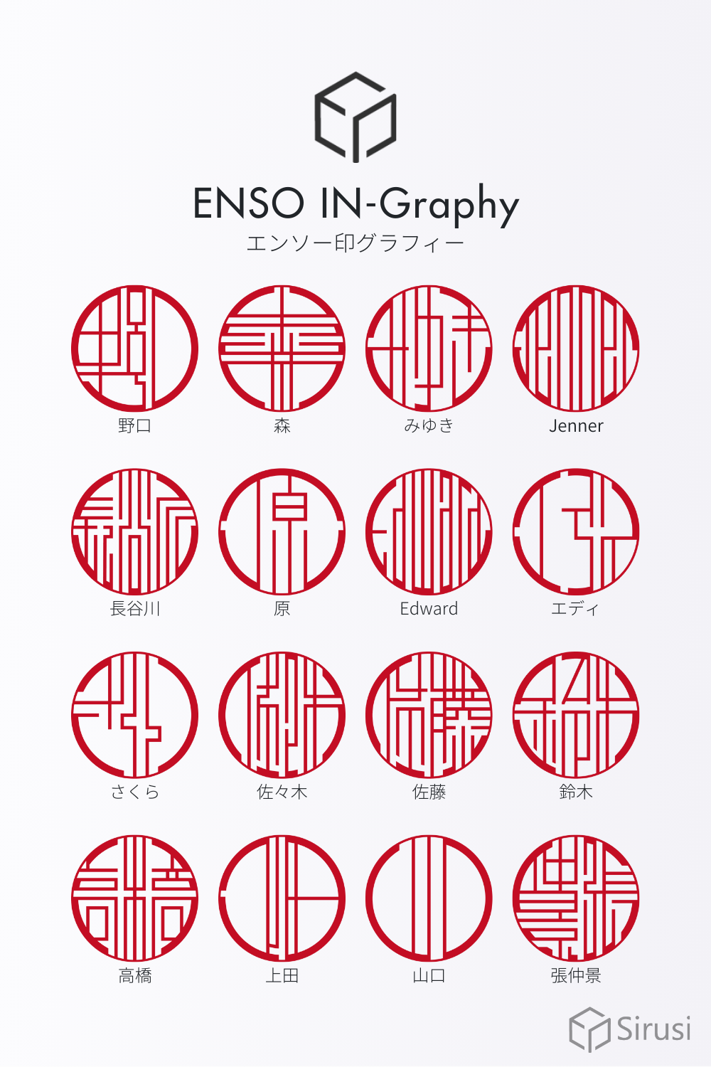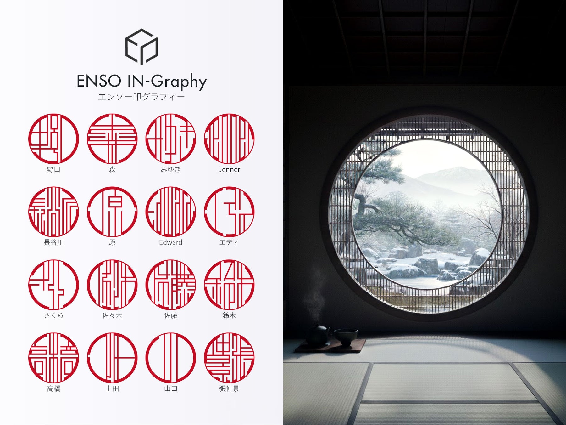 エンソー印グラフィーは、日本庭園を訪れた際に目にした円窓(えんそう)から着想を得て生まれたデザイン印鑑です。