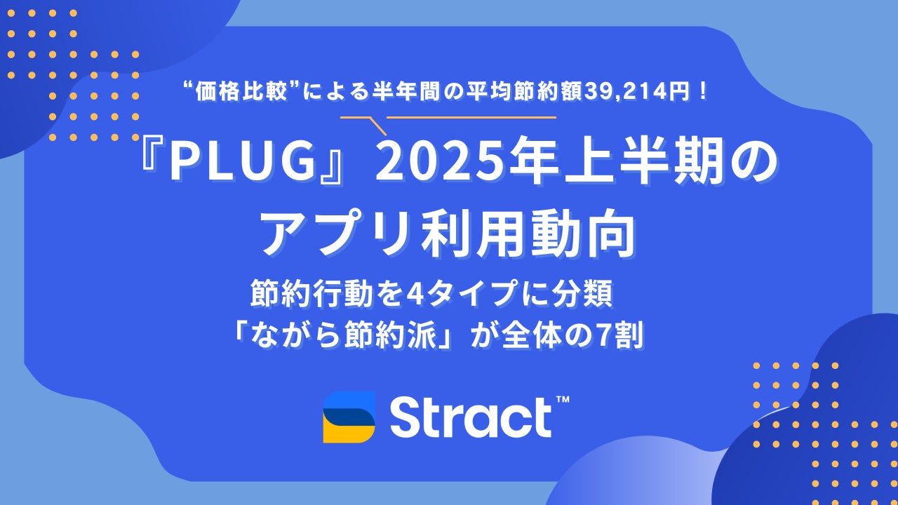 ショッピングアシストアプリ『PLUG(プラグ)』を提供する株式会社STRACT(本社:東京都千代田区、代表取締役社長:伊藤 輝)は、2025年上半期(1月~6月)におけるユーザーのアプリ利用データを分析し、消費者の節約傾向や買い物スタイルに関する調査を185,389人を対象に実施しました。調査結果によると、半年間の一人当たり平均節約額(*1)は39,214円、ひと月当たりに換算すると6,535円の節約に成功していることがわかりました。