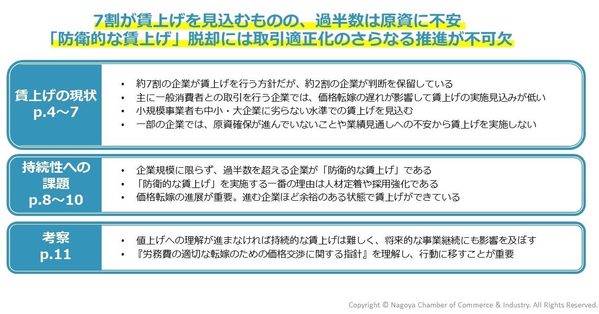 7割の企業が賃上げを予定する一方、過半数は「防衛的な賃上げ」ー名古屋商工会議所調査