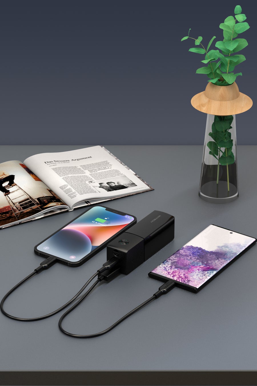 小型デザインの上、USB-CとUSB-Aの2ポートを搭載しています。もちろん、2台同時に充電することもできます。(USB-C+USB-A =最大15W) USB-Aが必要な充電の際にも困ることなく、接続・充電を行うことができます。
