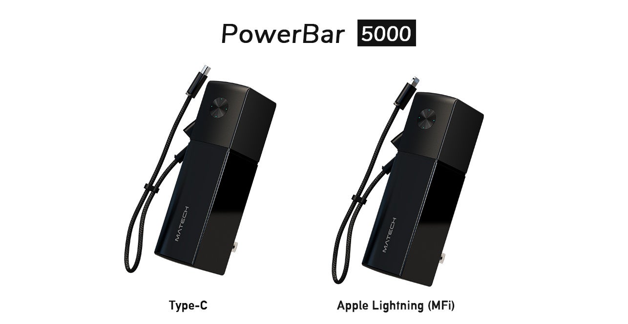 【MATECH】ケーブル内蔵ストラップ付きの1台3役スティック型バッテリー「PowerBar 5000」が販売開始